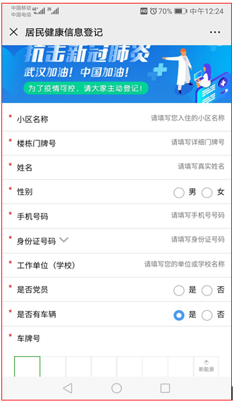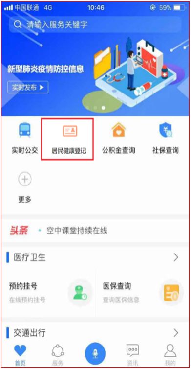 打开“合肥通”App,找到首页“居民健康登记”,点击打开信息登记页面,填写信息。