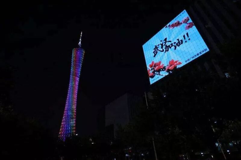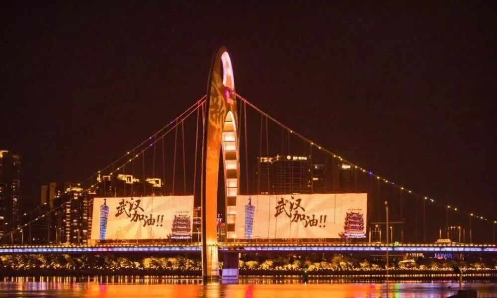 广州猎德大桥为武汉加油 图片来源于南方都市报企鹅号