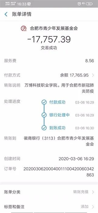 自全民抗疫以来,我校各级党组织、广大党员、团员迅速响应,活跃在抗疫一线,并踊跃捐赠,积极贡献力量。3月6日,在校团委的倡导下,我校1104名团员青年响应合肥团市委的号召,以网络捐款形式,共筹集资金17757.39元,并在第一时间把这份爱心善款捐至合肥市青少年发展基金会,用实际行动践行了我校团员、青年的团结奉献精神。