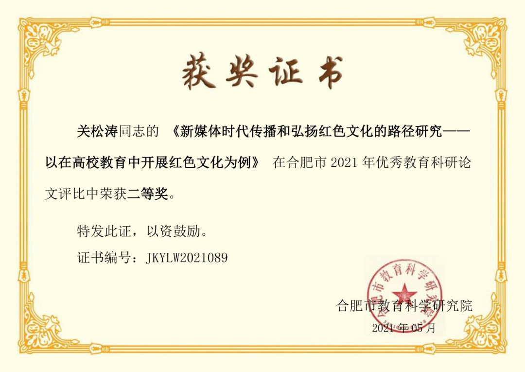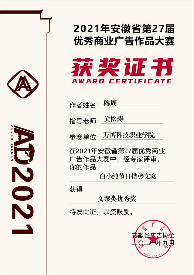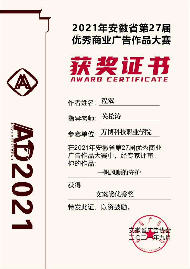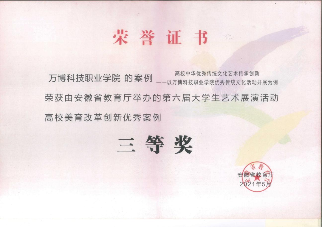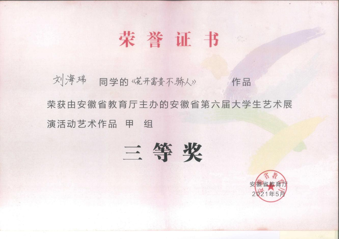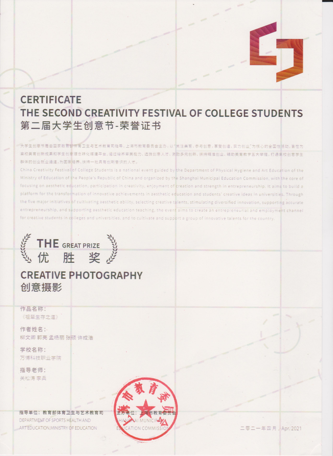 日前,随着安徽省大学生创新创业教育办公室对2021年度第四季度的学科竞赛获奖信息的公示结束,我校艺术传媒学院在2021年度共参加各类学科技竞赛8项,获得一等奖5项,二等奖8项,三等奖19项,优秀奖和入围奖130余项,优秀组织奖3项,优秀指导教师奖12人次。本年度我校在学科竞赛中无论是参赛的类别、次数和获奖等级均再创新高。